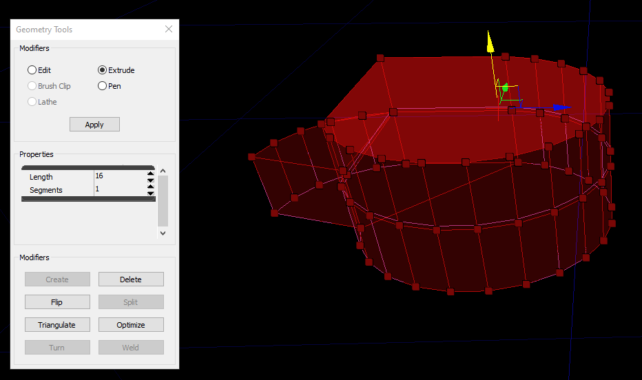 If you wish to create additional geometry, switch to the Extrude mode.